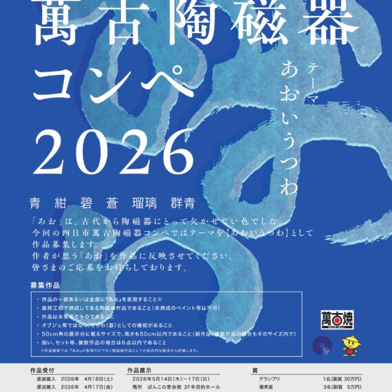 3階のホールでは、萬古陶磁器コンペティションの入賞作品の展示を行っております。今回のテーマは【あおいうつわ】様々な作品をぜひご覧ください。